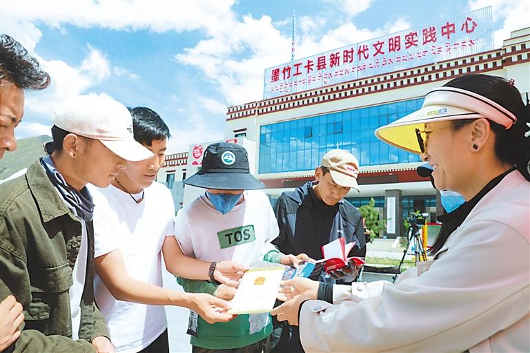 近日,墨竹工卡縣開展新時(shí)代文明實(shí)踐志愿服務(wù)活動。在活動現(xiàn)場,各參與單位為群眾發(fā)放宣傳手冊、書籍和雨傘、水杯等物品,向群眾宣傳講解相關(guān)知識,還以免費(fèi)理發(fā)、免費(fèi)修電腦等方式為現(xiàn)場群眾開展了送溫暖、送科技、送法律活動,進(jìn)一步提高了群眾對各項(xiàng)政策的知曉度,豐富了群眾的文化生活。