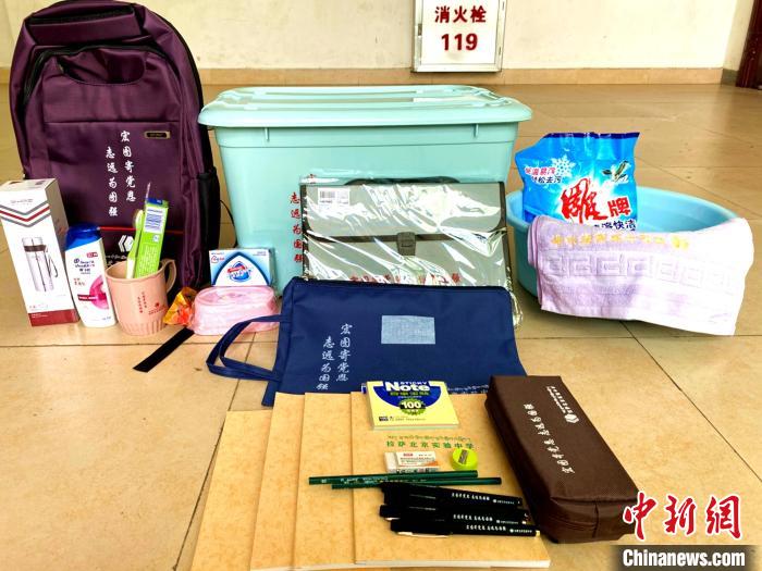 資料圖為京藏宏志班學生發(fā)放的學習、生活用品?!”本┰毓﹫D