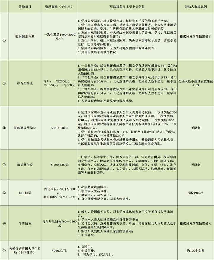 這些資助項(xiàng)目包括國(guó)家政策、西藏自治區(qū)政策和西藏各高校的政策,全部列出了明確的申請(qǐng)條件,涵蓋了學(xué)生生活、學(xué)習(xí)的方方面面。其中,有的項(xiàng)目針對(duì)家庭經(jīng)濟(jì)困難的學(xué)生給予學(xué)費(fèi)、住宿費(fèi)等的減免;有的項(xiàng)目為學(xué)生提供各種校內(nèi)勤工助學(xué)機(jī)會(huì),讓學(xué)生通過(guò)勞動(dòng)獲得報(bào)酬;有的項(xiàng)目獎(jiǎng)勵(lì)入伍,有的項(xiàng)目獎(jiǎng)勵(lì)發(fā)明創(chuàng)造……并且,西藏各高校在制定資助政策時(shí)體現(xiàn)出了各學(xué)校鮮明的辦學(xué)特點(diǎn)。例如,西藏藏醫(yī)藥大學(xué)設(shè)置了面向所有學(xué)生的“記誦《三部醫(yī)典》獎(jiǎng)”,要求“熱愛(ài)社會(huì)主義祖國(guó),擁護(hù)中國(guó)共產(chǎn)黨的領(lǐng)導(dǎo);遵紀(jì)守法,遵守學(xué)校規(guī)章制度;背誦學(xué)生按‘三部醫(yī)典’章節(jié)順序依次背誦。在背誦過(guò)程中,要吐字清晰,聲音宏亮,總時(shí)間不能超過(guò)2個(gè)小時(shí)。”凡是達(dá)到要求的學(xué)生,獎(jiǎng)勵(lì)1800元。