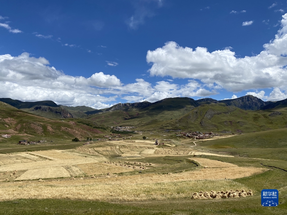 金秋時(shí)節(jié),在青海省玉樹藏族自治州囊謙縣,黑青稞迎來豐收,在陽光的照射下,一望無際的田地里遍地金黃。望著往來穿梭的收割機(jī),拉東才索南滿懷希望。
