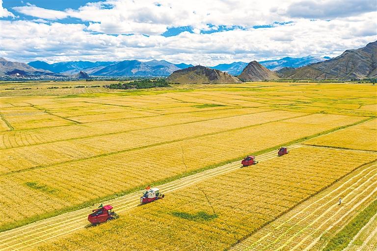 努力把資源優(yōu)勢轉(zhuǎn)化為發(fā)展優(yōu)勢,做大做強高原特色產(chǎn)業(yè),加快構(gòu)建現(xiàn)代產(chǎn)業(yè)體系。2012年至2021年,城鎮(zhèn)居民和農(nóng)村居民人均可支配收入分別從18362元、5698元增長至46503元、16932元。圖為西藏自治區(qū)江孜縣紫金鄉(xiāng)青稞種植喜獲豐收。