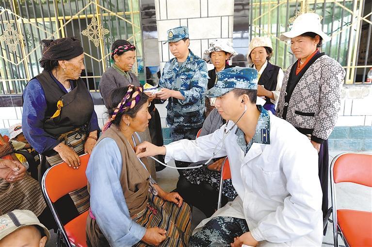 軍愛民、民擁軍,軍民團結(jié)一家親。圖為駐藏某部官兵為當(dāng)?shù)厝罕娏x診。