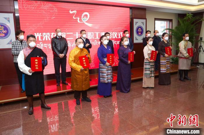 圖為座談會(huì)上為光榮在院工作20周年以上的職工頒發(fā)榮譽(yù)證書(shū)?!≈袊?guó)藏學(xué)研究中心供圖