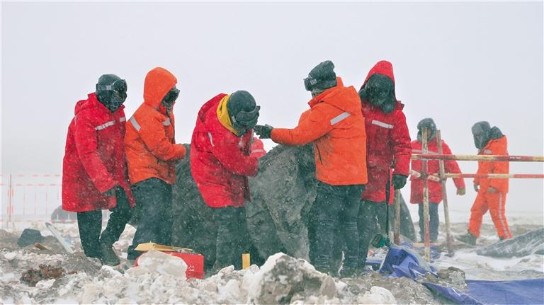 電力建設(shè)者在海拔4600多米的阿里聯(lián)網(wǎng)施工現(xiàn)場(chǎng)。圖由國(guó)網(wǎng)西藏電力有限公司提供