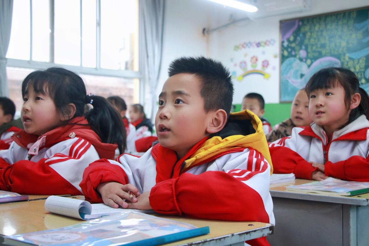 秦關(guān)鄉(xiāng)中心小學(xué)的孩子們正在上課