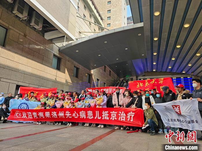 3月19日,來自青海省果洛藏族自治州的17名先天性心臟病患兒在家屬等人陪同下,乘坐火車抵達(dá)北京西站,將在北京的四家醫(yī)院接受免費手術(shù)治療。圖為接站現(xiàn)場。中新社發(fā) “同心·共鑄中國心”組委會供圖