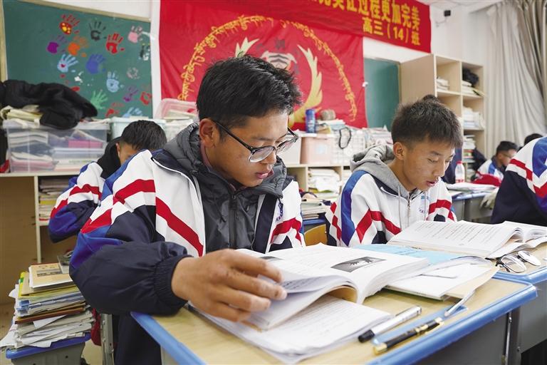 “叮鈴鈴”……隨著下課鈴聲響起,教室瞬間“熱鬧”了起來。有的同學走出教室活動久坐的身體、有的同學拿出習題冊和同桌小聲地討論、有的同學向老師請教不明白的知識點……清風拂過,暖暖的陽光照在這些青春的身影上,演繹出一首屬于青春的奮斗頌歌?!艾F(xiàn)在是最緊要的關頭,必須把全部精力投入到學習中,爭取多掌握一些知識點?!备呷?2班學生索朗旦增說,“我的目標是西南政法大學,希望通過自己的努力能實現(xiàn)這個夢想?!?/p>