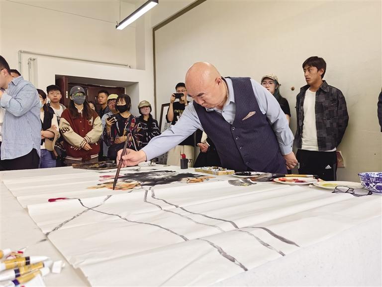 6月5日,由國(guó)家藝術(shù)基金支持,北京畫友藝術(shù)交流中心主辦的《意境》唐詩(shī)主題畫展在西藏大學(xué)藝術(shù)學(xué)院成功舉辦。此次主題畫展有賈平西、劉曦林、張松等20余位藝術(shù)家作品參展。中國(guó)藝術(shù)研究院文學(xué)藝術(shù)院專職畫家、國(guó)家一級(jí)美術(shù)師林維與南開大學(xué)藝術(shù)與美學(xué)研究院副院長(zhǎng)、博士生導(dǎo)師尹滄海現(xiàn)場(chǎng)揮毫潑墨、即興發(fā)揮,給西藏大學(xué)獻(xiàn)上了兩幅圖。