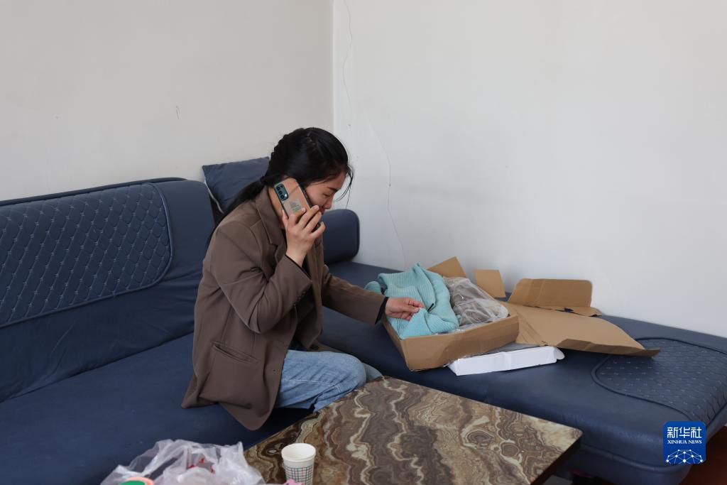 收到媽媽寄來(lái)的衣物后,潘紅培在與媽媽通話(huà)。(受訪(fǎng)者供圖)