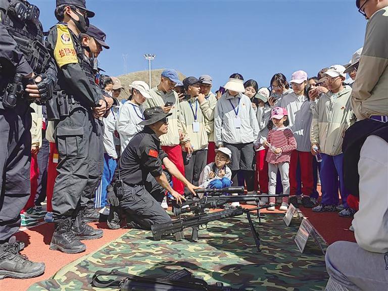記者了解到,在26日禁毒日當天,全體學生還參加了拉薩市公安局柳梧特警支隊的“警營開放日”活動,近距離體驗了特警的工作日常和各類特警裝備,并與特警們互動。特警向?qū)W生們講解了如何搜毒、識毒等安全知識,讓學生們對“綠色無毒、健康人生”有了進一步了解。也讓大家樹立了從警夢想,豐富和拓展了營員們的文化生活,讓學生們過了一次難忘的警營之旅。