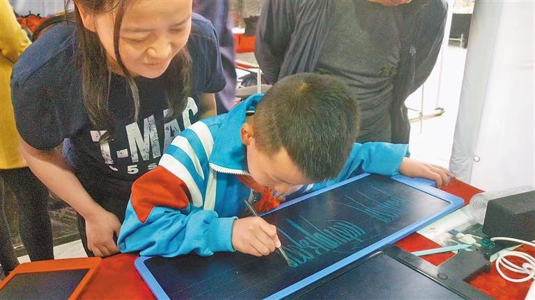 圖為小學生在次仁多吉設(shè)計的電子寫字板上書寫藏文字母。見習記者 武沛濤 攝