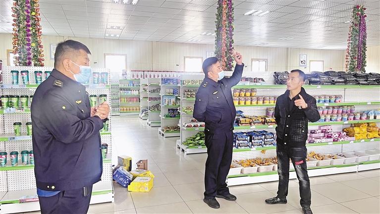 為拉薩市市場監(jiān)管局執(zhí)法人員在學(xué)校附近的商超進(jìn)行檢查。記者 央金 攝