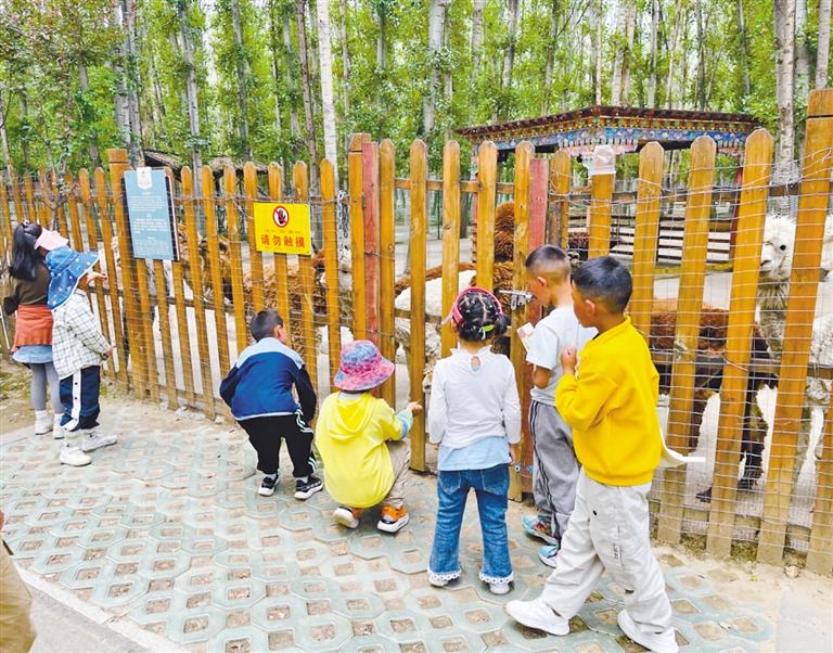 圖為孩子們?cè)谇h動(dòng)物園游玩。 記者 格桑倫珠 攝