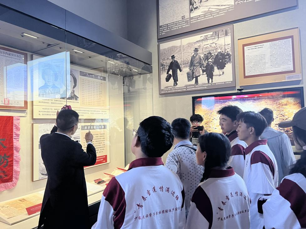 據(jù)悉,利用今年的暑期假日,來自浙江中醫(yī)藥大學(xué)的十余名西藏籍大學(xué)生,在該校老師的帶領(lǐng)下,組成“民族團(tuán)結(jié)返鄉(xiāng)實(shí)踐團(tuán)”,先后到西藏自治區(qū)博物館參觀了“雪域長(zhǎng)歌—西藏歷史與文化展”“離太陽最近的人—西藏民俗文化展”文創(chuàng)體驗(yàn)館等展區(qū),通過一件件實(shí)物、照片、圖表、影像和實(shí)景還原方式,一同領(lǐng)略了青藏高原獨(dú)有的文化魅力?;顒?dòng)期間,實(shí)踐團(tuán)成員還驅(qū)車來到拉薩市林周縣參觀了林周農(nóng)場(chǎng)的紅色革命遺址,一同觀看民族團(tuán)結(jié)紀(jì)錄片《高原大寨花》和《擁抱春天》。