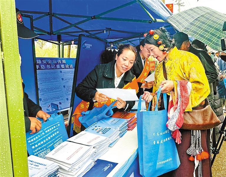 圖為那曲市索縣網(wǎng)信辦工作人員向過往群眾講解網(wǎng)絡(luò)安全知識(shí)。記者 曲珍 攝