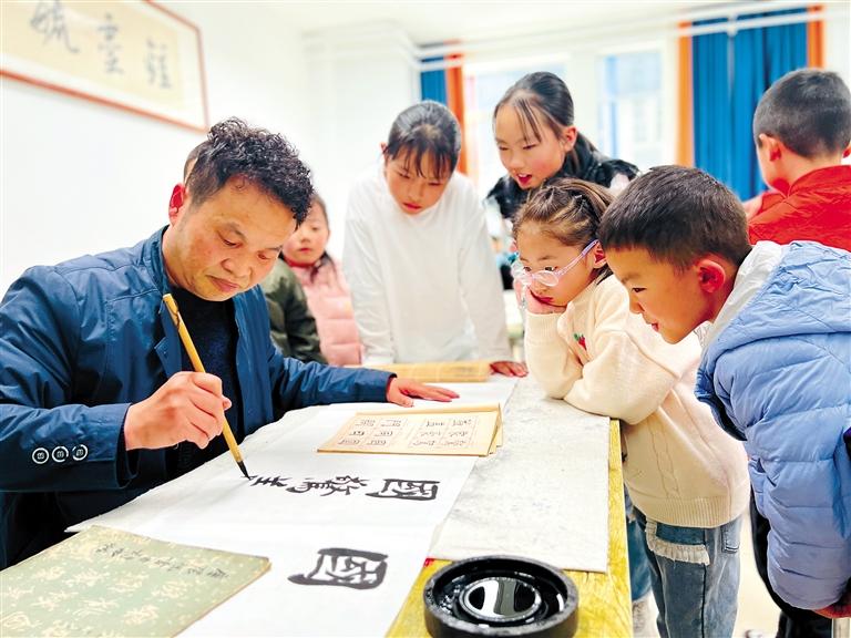 圖為少年宮老師為學員上書法課。