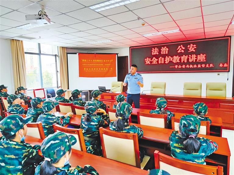 圖為拉薩市公安局執(zhí)法監(jiān)督支隊民警為少年宮學員開展安全自護教育講座。