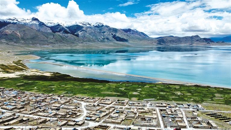 主題教育開展以來,西藏各級(jí)各部門深入貫徹落實(shí)習(xí)近平生態(tài)文明思想,著力創(chuàng)建國(guó)家生態(tài)文明高地取得顯著成效。這是那曲市尼瑪縣文布北村,當(dāng)穹錯(cuò)碧藍(lán)清亮的湖水與湖畔的村落相映,構(gòu)成了一幅人與自然和諧共生的美麗畫卷。(無人機(jī)拍攝) 記者 趙書彬 攝