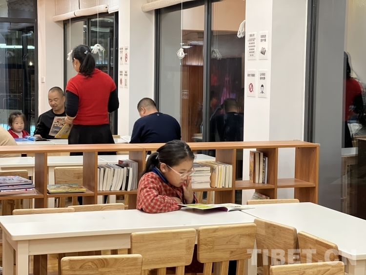 走進(jìn)蓮花書(shū)屋,一樓的書(shū)架和閱讀區(qū)幾乎坐滿(mǎn)了專(zhuān)心閱讀的大人小孩?!拔蚁矚g來(lái)公園散步,這里環(huán)境很美。前天過(guò)來(lái)散步時(shí),看到我期待已久的書(shū)屋終于可以進(jìn)去看書(shū)了。家里的書(shū)都被我看完了,所以我這兩天一寫(xiě)完作業(yè)就要來(lái)這里看新的書(shū)?!蔽迥昙?jí)的德央措姆在少兒閱讀區(qū)翻看書(shū)籍,她為能夠擁有這樣的讀書(shū)環(huán)境而感到很高興。