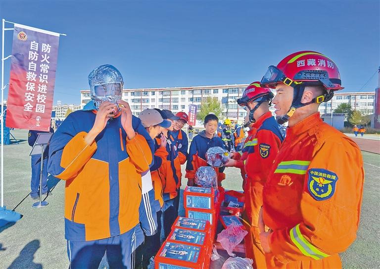 11月5日,2023年日喀則市“119”消防宣傳月活動啟動儀式在日喀則市第三高級中學(xué)舉行。日喀則市消防安全委員會成員單位及師生代表共1500余人參加活動?;顒又校兰寄芴魬?zhàn)、消防科普互動、消防裝備展覽、改革轉(zhuǎn)隸五周年成果展、消防技能展示等,吸引了大批師生近距離體驗(yàn)消防、認(rèn)識消防,進(jìn)一步筑牢校園消防安全“防火墻”。