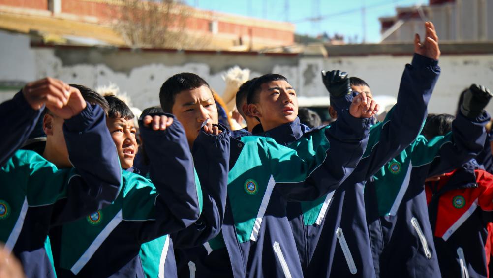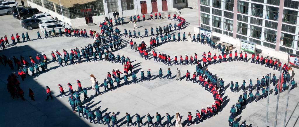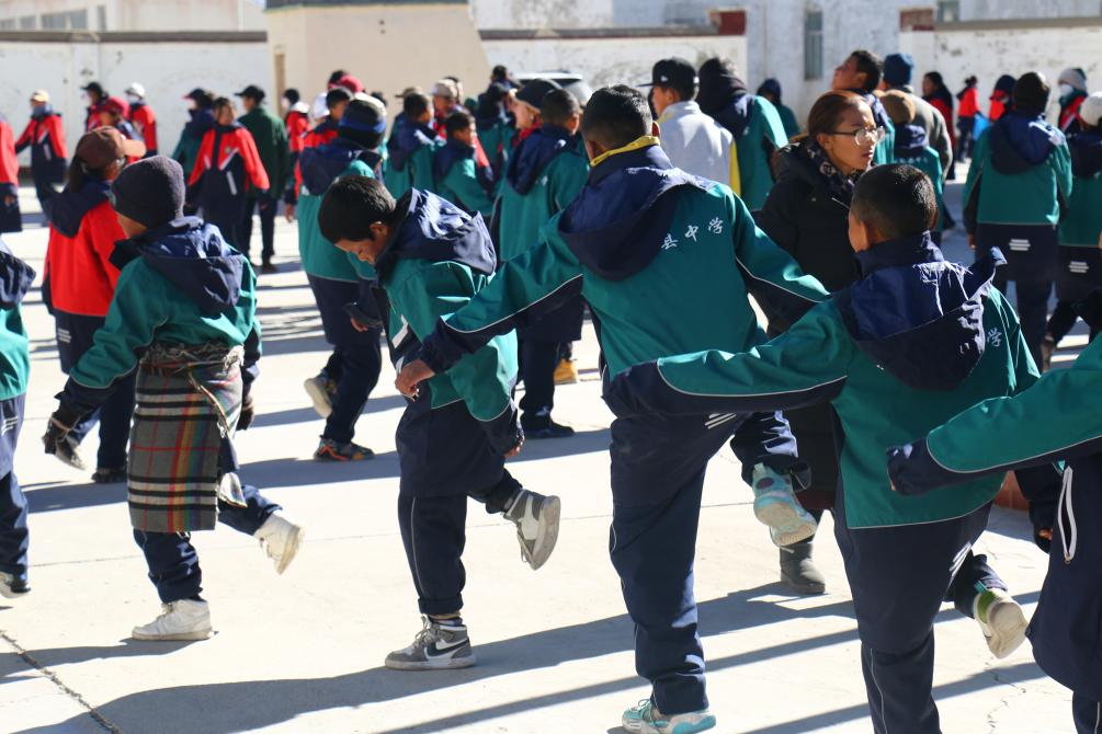 西藏阿里措勤縣中學(xué)的學(xué)生們涌向操場