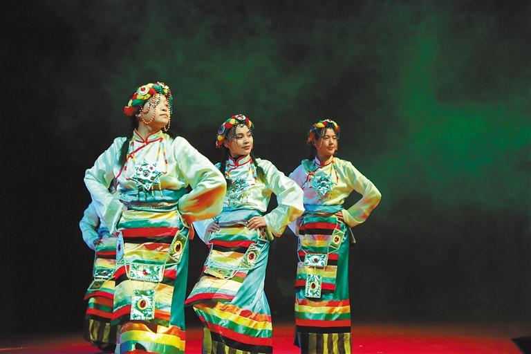 圖為學(xué)生表演藏族傳統(tǒng)舞蹈。