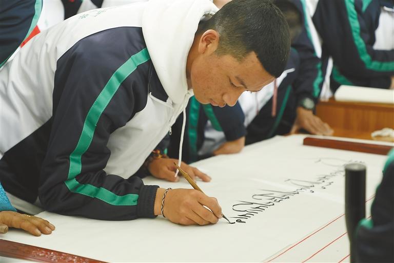 拉薩北京實驗中學(xué)教師洛桑多吉精通藏文書法,有著豐富的傳統(tǒng)藏文書法教學(xué)經(jīng)驗,他堅持長期輔導(dǎo)學(xué)生,讓學(xué)生在書法練習(xí)中陶冶性情,靜心修身;在書法進(jìn)益的過程中感受傳統(tǒng)文化的魅力,提升學(xué)習(xí)能力。