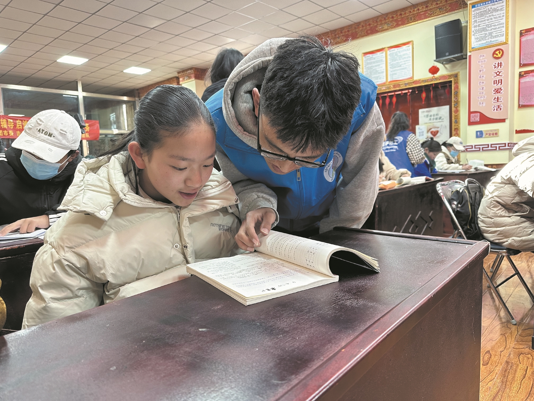 寒假期間,不少家長因?yàn)闆]辦法輔導(dǎo)孩子的日常學(xué)習(xí)而感到苦惱。前不久,吉崩崗街道聯(lián)合市團(tuán)委、摯善公益團(tuán)隊(duì)在熱木其社區(qū)居委會里設(shè)立了一個(gè)臨時(shí)“教室”,為轄區(qū)孩子們提供為期一個(gè)月的課業(yè)輔導(dǎo)志愿服務(wù)。現(xiàn)場,返鄉(xiāng)大學(xué)生志愿者們變身為一名名“小老師”,耐心幫助孩子們解決學(xué)習(xí)難題,輔導(dǎo)的課業(yè)涵蓋了小學(xué)、初中的所有科目。除了教作業(yè),志愿者還組織孩子們開展演講比賽、書法比賽等活動,充實(shí)了孩子們的假期生活。