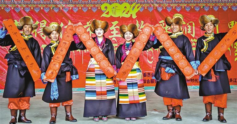 日前,西藏山南市曲松縣邱多江鄉(xiāng)組織300多名干部群眾在瑪如村舉辦了以“喜得佳節(jié)至 牧歌潤川野”為主題的“村晚”文藝匯演活動。當(dāng)?shù)啬撩?、返鄉(xiāng)大學(xué)生用17個精彩的舞蹈、歌曲、朗誦等節(jié)目,謳歌新時代新生活,展現(xiàn)基層群眾積極樂觀、昂揚(yáng)向上的精神風(fēng)貌。
