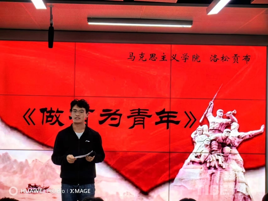 洛松貢布,出生于西藏自治區(qū)昌都市洛隆縣,現(xiàn)在是首都師范大學馬克思主義學院的學生。受到老成員的邀請,洛松貢布在大二期間就成為“京城藏韻”公眾號的成員之一,從事活動的組織和協(xié)調工作。相信對于很多在京求學工作的藏族年輕人來說,“京城藏韻”并不陌生,除了定期為西藏青年提供信息資訊以外,還成為了許多藏族學子在北京的“家”?!熬┏遣仨崱笔窃诰┎刈鍖W生們自發(fā)性的群眾組織,已經(jīng)舉辦過多屆神牛杯足球賽、巴扎杯籃球賽和羚羊杯鍋莊舞大賽。洛松貢布牽頭舉辦的“強國有我青春有為”的演講比賽是第一屆,未來還將繼續(xù)舉辦下去。通過豐富多彩的課外活動,藏族青年們在這里共同成長、共同進步。