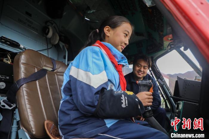 昌都市第二小學(xué)學(xué)生登機體驗救援直升機。昌都市森林消防支隊 供圖