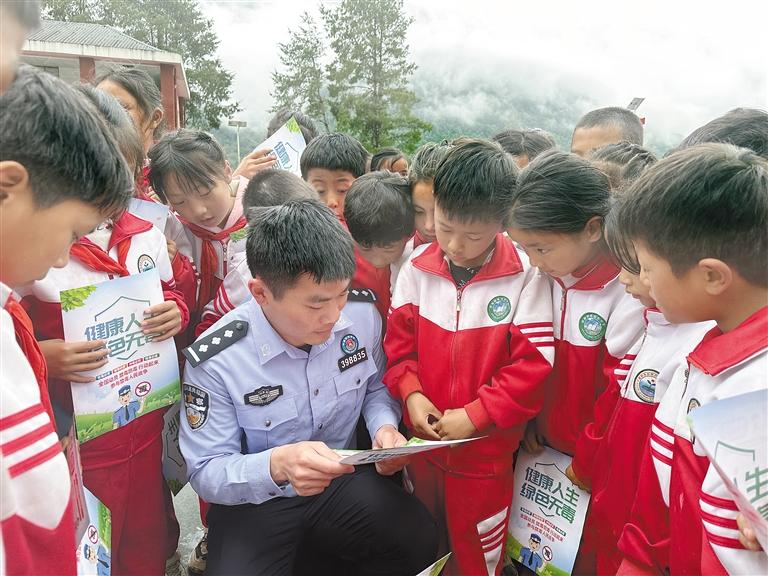 墨脫縣格當鄉(xiāng)邊境派出所民警為格當鄉(xiāng)小學的師生們講解禁毒小知識。記者 王敏 通訊員 郎玲 攝
