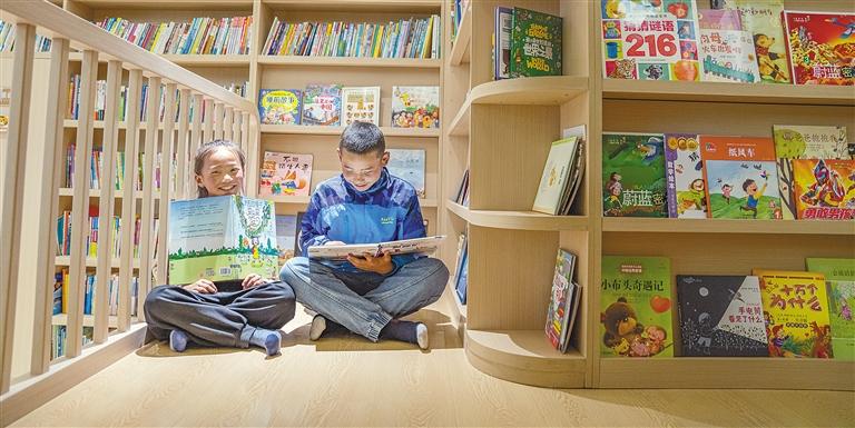 孩子們?cè)凇皽嘏巍ど岢鞘袝?shū)房”內(nèi)閱讀兒童繪本。