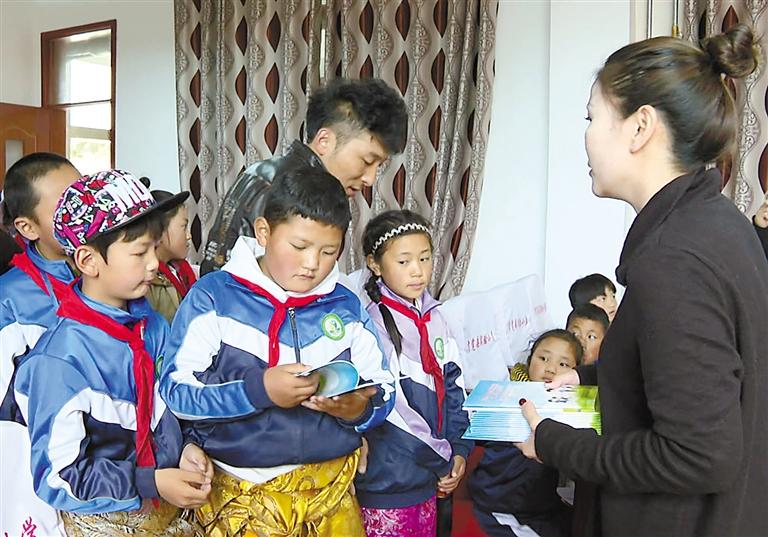 圖為貢覺(jué)縣法院工作人員向?qū)W生講解禁毒知識(shí)。記者 平措郎加 通訊員 阿漠依依 攝