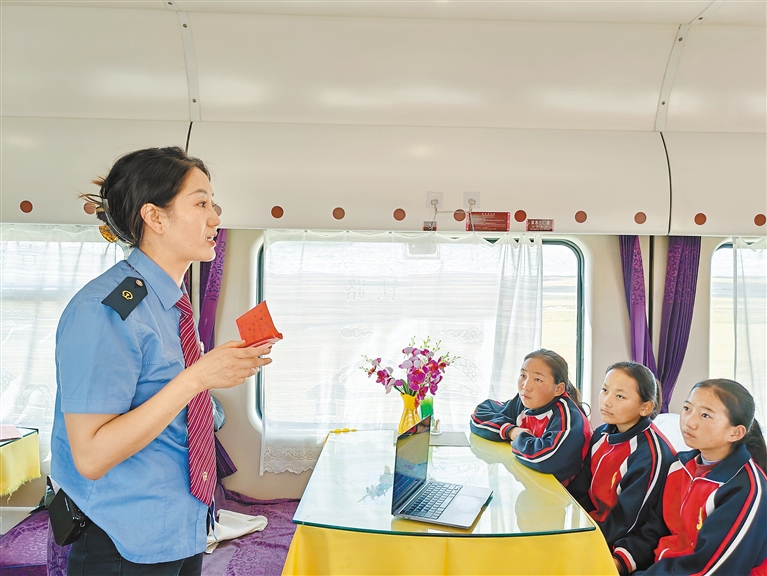 “孩子們,等咱們后面火車開到唐古拉、開到風火山,我會讓列車員提醒大家,大家看到窗外的風景,可不能忘了前輩們的奉獻??!”四朗卓嘎在課上告訴孩子們。