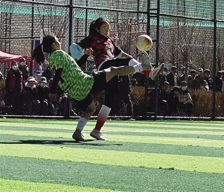 而最能證明她們訓(xùn)練成果的就是足球聯(lián)賽。?。玻埃玻衬辍坝卤笨徜J運動拉薩業(yè)余足球5人制(女子組)比賽、第二屆“亞克杯”女子5人制交流賽在拉薩開賽,這也是西藏少有的女足賽事。米央以拉薩另類女子足球隊隊員身份參賽,盡管米央是隊內(nèi)年紀最小的成員,但她的能力絲毫不遜于任何人。米央所在的這支由高中生、大學(xué)生等組成的隊伍,經(jīng)過10場比賽,拼盡全力最終奪得冠軍?!懊慨斪闱蛟谖夷_下滾動飛躍,每當我奔跑在綠茵場上,那種肆意和快樂讓我堅定我的選擇,我的夢想是踢進中國國家女子足球隊。”米央說。雖然她與夢想還有距離,但內(nèi)心那股熊熊燃燒的信念力量,成為她刻苦訓(xùn)練的“定心丸”。