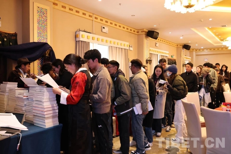 圖為現(xiàn)場(chǎng)讀者領(lǐng)取書籍。攝影:澤旺甲