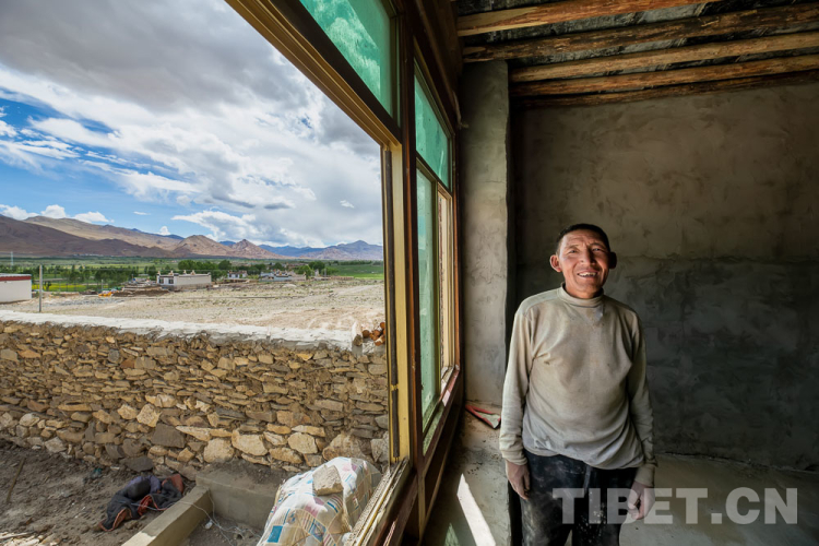 圖為隆子縣隆子鎮(zhèn)扎果村村民旺堆在隆子縣日當(dāng)鎮(zhèn)宗那建筑有限公司正在建設(shè)中的祿東贊大酒店工作攝影:趙耀