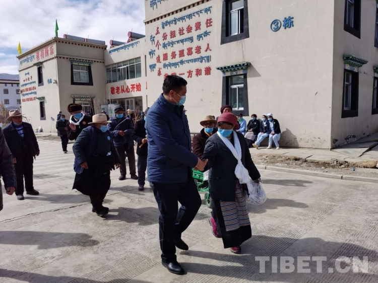 圖為隆子縣日當(dāng)鎮(zhèn)宗那建筑有限公司和興隆扶貧運(yùn)輸公司負(fù)責(zé)人加央曲扎慰問(wèn)當(dāng)?shù)厝罕?圖片由隆子縣日當(dāng)鎮(zhèn)宗那建筑有限公司和興隆扶貧運(yùn)輸公司提供