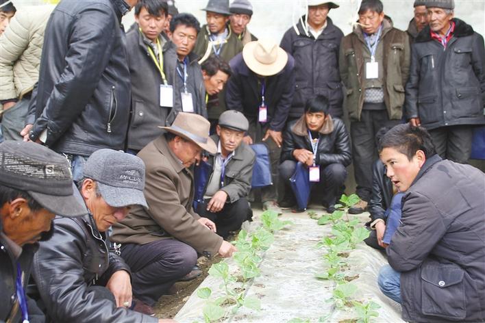 圖為白朗縣龍頭企業(yè)技術(shù)人員對貧困戶進行蔬菜種植技術(shù)培訓(xùn)。記者 次仁片多 索朗瓊珠 攝