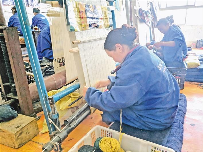 圖為江孜縣年堆鄉(xiāng)尼瑪藏式卡墊加工農(nóng)民專業(yè)合作社工人正在工作。記者 唐啟勝 潘璐 攝