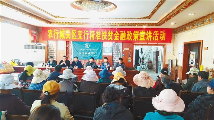農行城關區(qū)支行在納金鄉(xiāng)為農牧民宣講金融扶貧政策和扶貧產品。