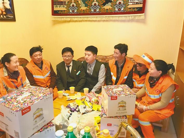 農行康昂東路支行員工關心關愛環(huán)衛(wèi)工人。