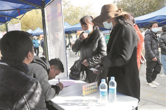 為精準(zhǔn)解決老城區(qū)低收入群體就業(yè)問(wèn)題,11月16日,老城區(qū)百巷千家就業(yè)增收精準(zhǔn)對(duì)接專(zhuān)場(chǎng)招聘會(huì)在八廓商城廣場(chǎng)舉行。