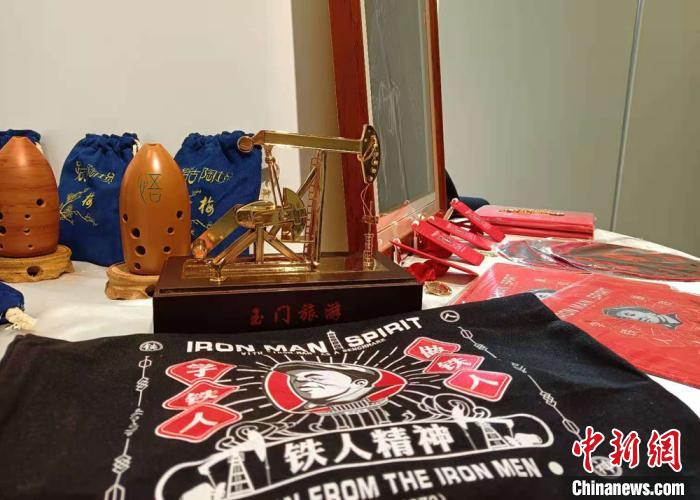 圖為“鐵人”王進(jìn)喜故里甘肅玉門以“鐵人精神”制作的文創(chuàng)產(chǎn)品展示?!堟?攝