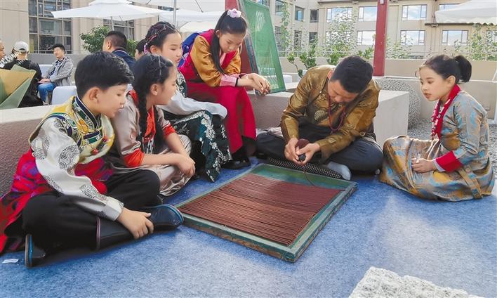 近日,由藏族青年男歌手三木科創(chuàng)立的“藏源自然 香養(yǎng)世間——曼?!逼放瓢l(fā)布會在拉薩舉行。 圖為藏香制作手工藝人在教孩子們制作藏香。記者 鄭璐 攝