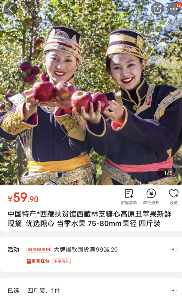 11月23日,隨著全國電子商務(wù)進(jìn)農(nóng)村綜合示范西藏整區(qū)推進(jìn)項(xiàng)目林芝市電子商務(wù)公共服務(wù)中心開業(yè)暨電商助力脫貧攻堅(jiān)“林芝蘋果”上行京東西藏扶貧館啟動(dòng)儀式在林芝市巴宜區(qū)舉行,“林芝蘋果”也正式依托中國特產(chǎn)西藏扶貧館等電商渠道進(jìn)行銷售。