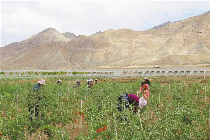 西藏日喀則白朗萬畝枸杞生態(tài)觀光產(chǎn)業(yè)園實(shí)施以來,通過土地流轉(zhuǎn)、農(nóng)牧民就業(yè)、機(jī)械租賃、種植技術(shù)培訓(xùn)、產(chǎn)業(yè)分紅等方式,有效支撐了農(nóng)牧民增收和脫貧致富。截至9月底,園區(qū)累計(jì)帶動(dòng)農(nóng)牧民就近就便務(wù)工13萬人次,為利益聯(lián)結(jié)的1592名貧困人口兌現(xiàn)產(chǎn)業(yè)分紅193.75萬元。據(jù)了解,園區(qū)項(xiàng)目全面建成后,預(yù)計(jì)每年需要用工達(dá)37.5萬人次、長期用工500人。