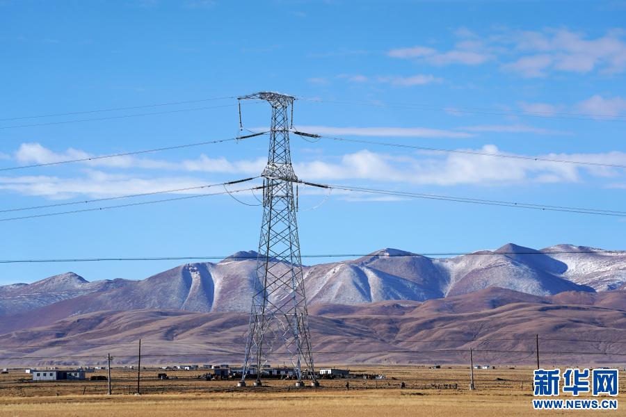 這是2020年11月29日在西藏阿里地區(qū)普蘭縣拍攝的西藏阿里與藏中電網聯(lián)網工程輸電鐵塔。新華社記者 詹彥 攝