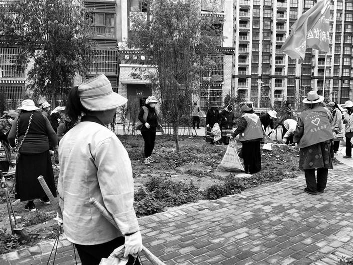 東嘎鎮(zhèn)祥和苑社區(qū)每周末以聯(lián)戶為單位,整治衛(wèi)生環(huán)境,摒棄“臟、亂、差”,營造良好的社區(qū)環(huán)境。“每個周末,我都會參加志愿服務(wù)活動,主要是清理社區(qū)公共區(qū)域,有時也會去清理河道,希望可以為社區(qū)建設(shè)出份力。”今年72歲的老人卓瑪告訴記者。